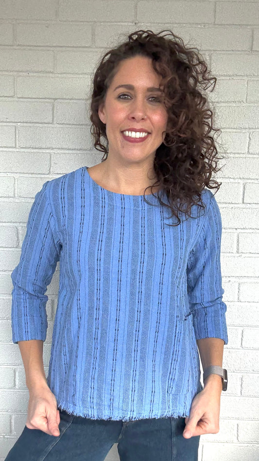 Cut Loose Cotton/Linen 3/4 Sleeve Tuck Front Tee - Multiple Colors