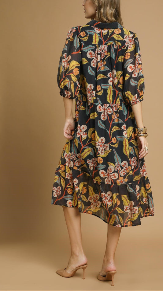 Umgee Mixed Floral Tiered Midi Dress