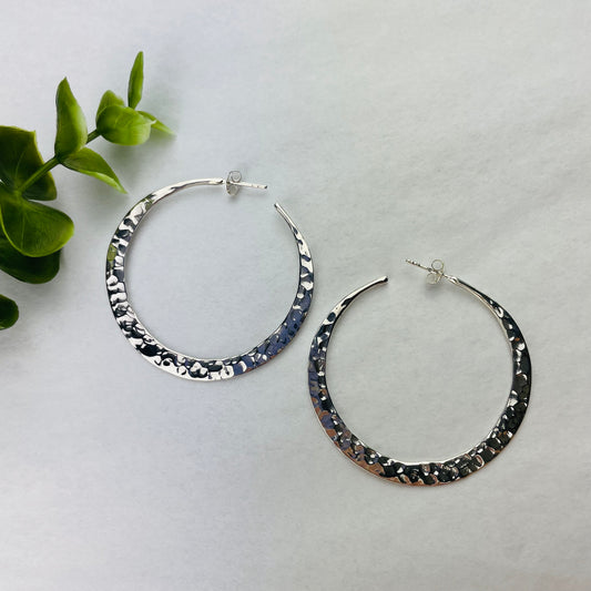 L.E. Leonard Sterling Silver Hammered Hoop Earrings- Multiple Metals