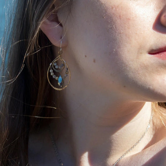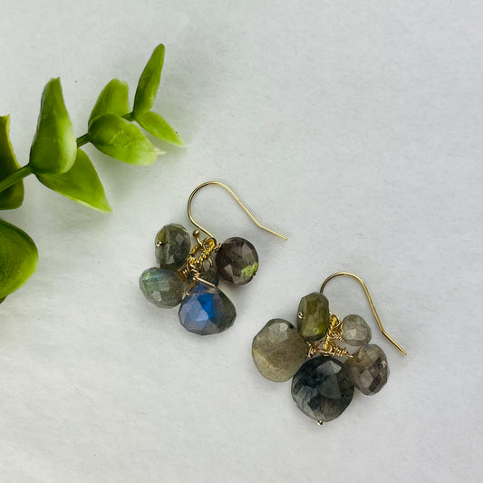 Edgy Petal Dainty Labradorite Cluster Chain Earrings