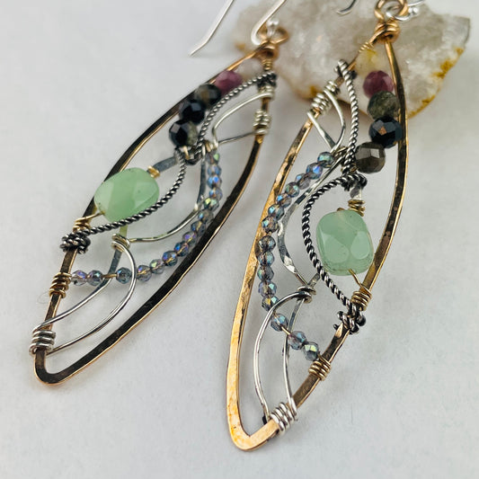 Edgy Petal Streaming Seafoam Chalcedony Teardrop Earring