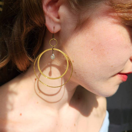 Edgy Petal Labradorite Hammered Circle Hoop Earrings