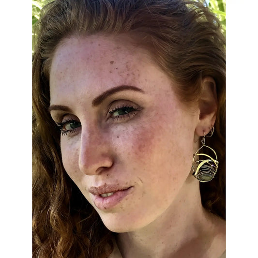 Edgy Petal Labradorite Golden Oval Boho Earrings