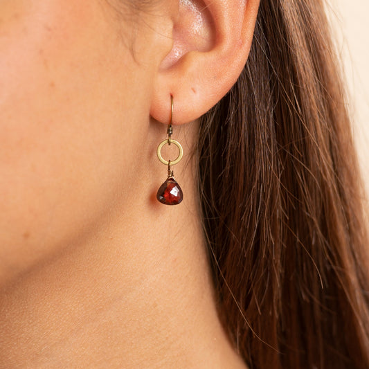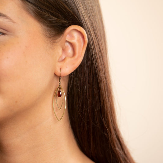 Edgy Petal Garnet Double Marquis Golden Teardrop Earrings