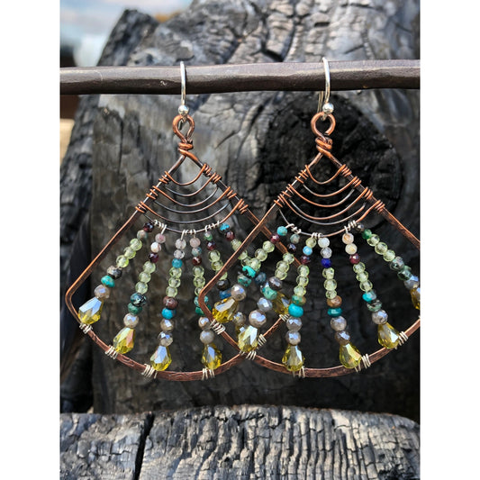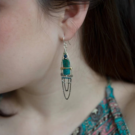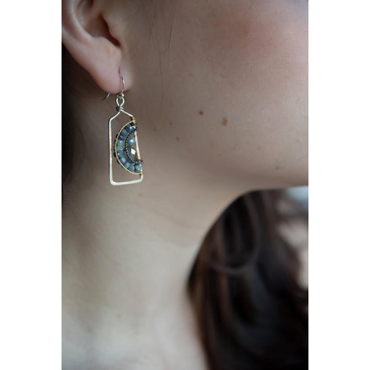 Edgy Petal Labradorite Hammered Half Moon Earrings