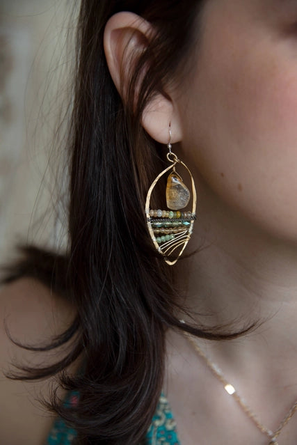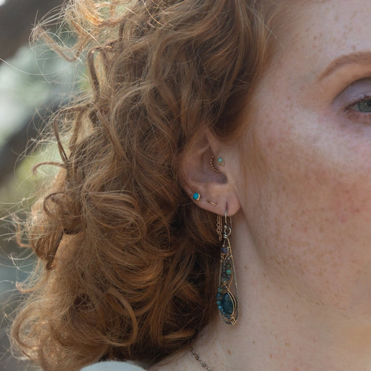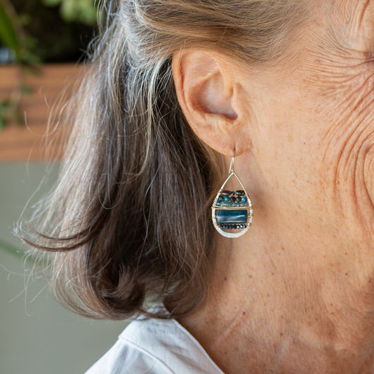 Edgy Petal Blue Amazonite Wire Wrap Earrings