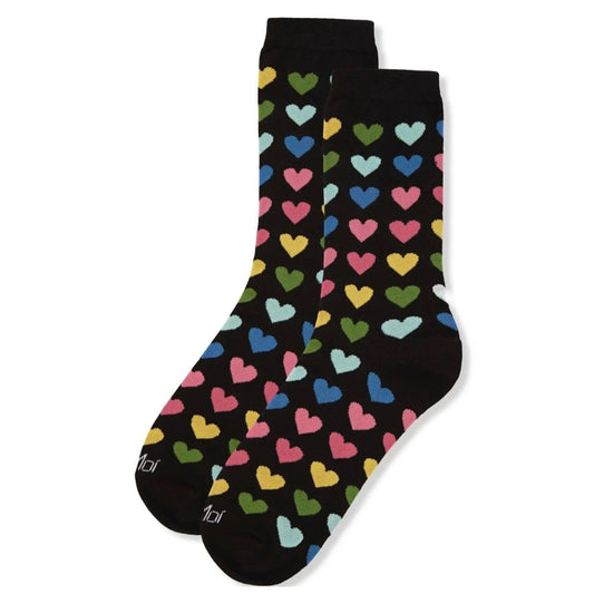 MeMoi Multicolored Hearts Bamboo Crew Socks
