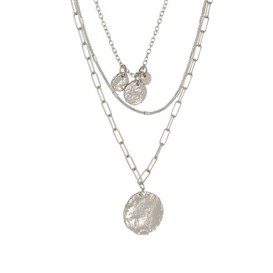 3-Row Multi Chain Necklace w/ Pendants - Multiple Metals