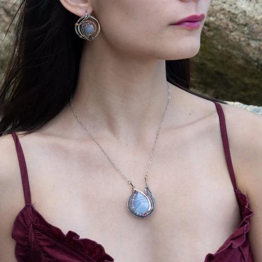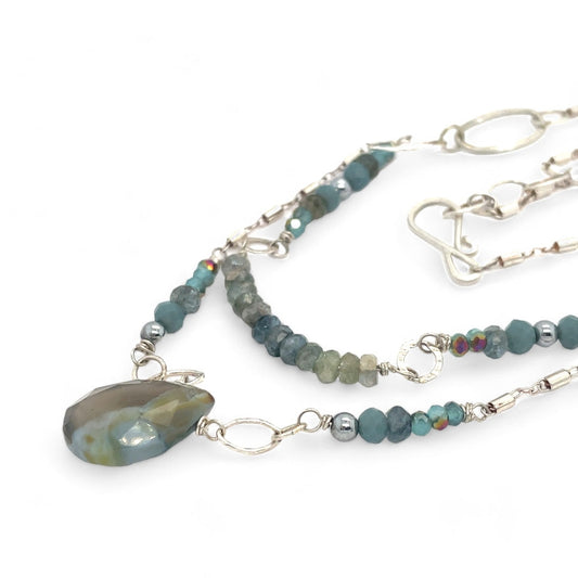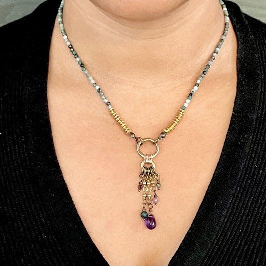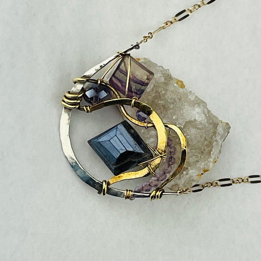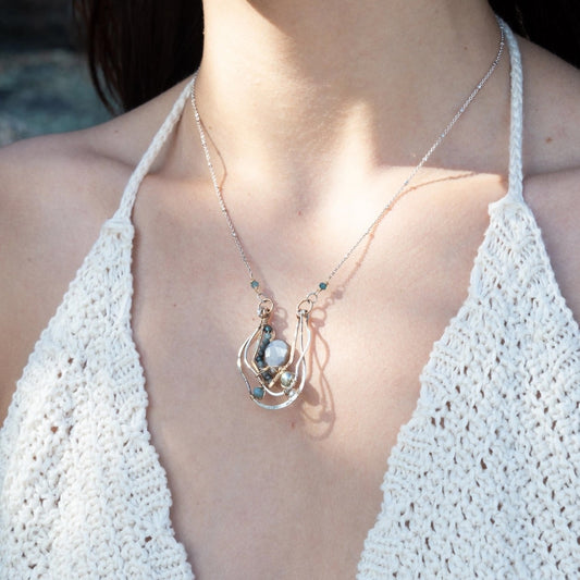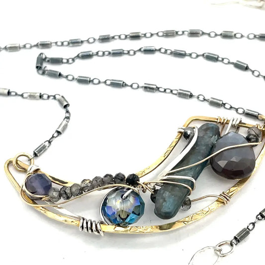Edgy Petal Labradorite Wire Wrapped Pendant Necklace