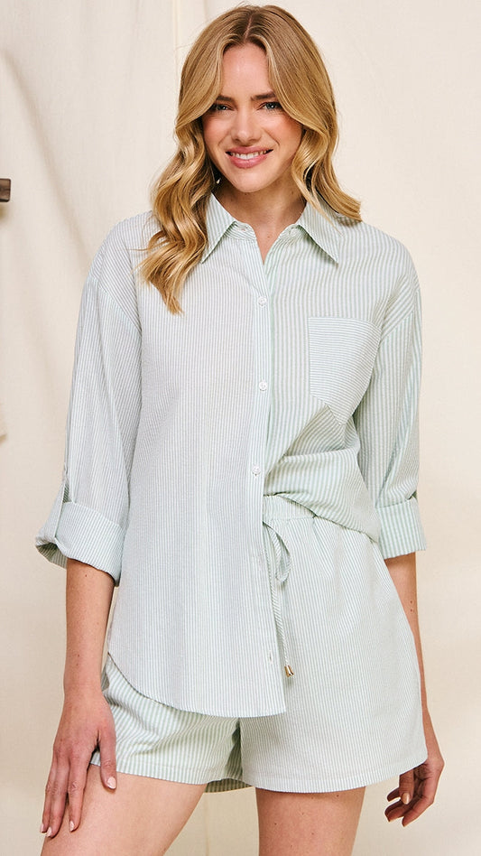Shana Apparel Crinkle Mixed Media Pocket Top