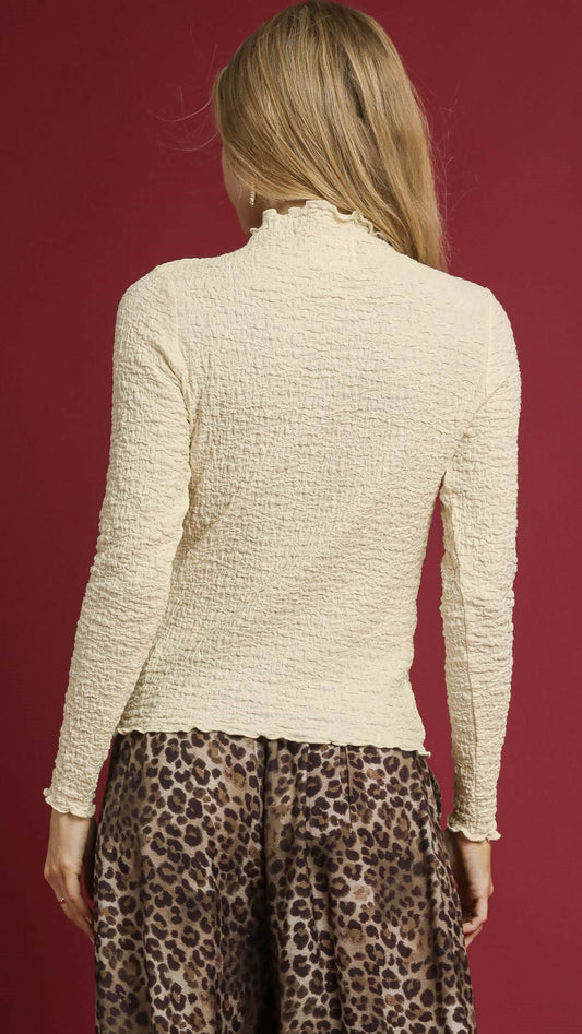 Umgee Textured Crinkle Knit Long Sleeve Top