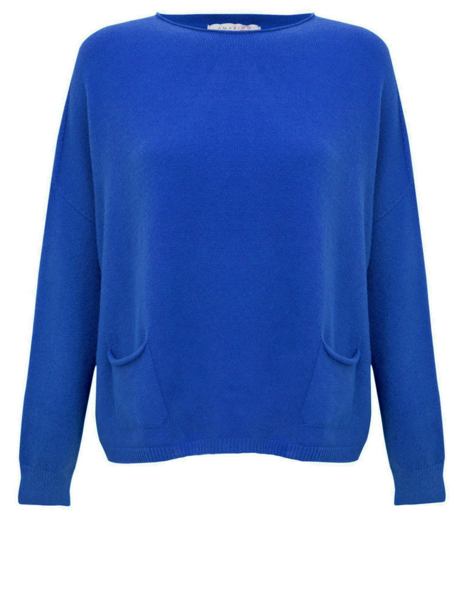 Relaxed, boxy style top with boatneck, drop shoulders, fitted long sleeves and 2 front pockets