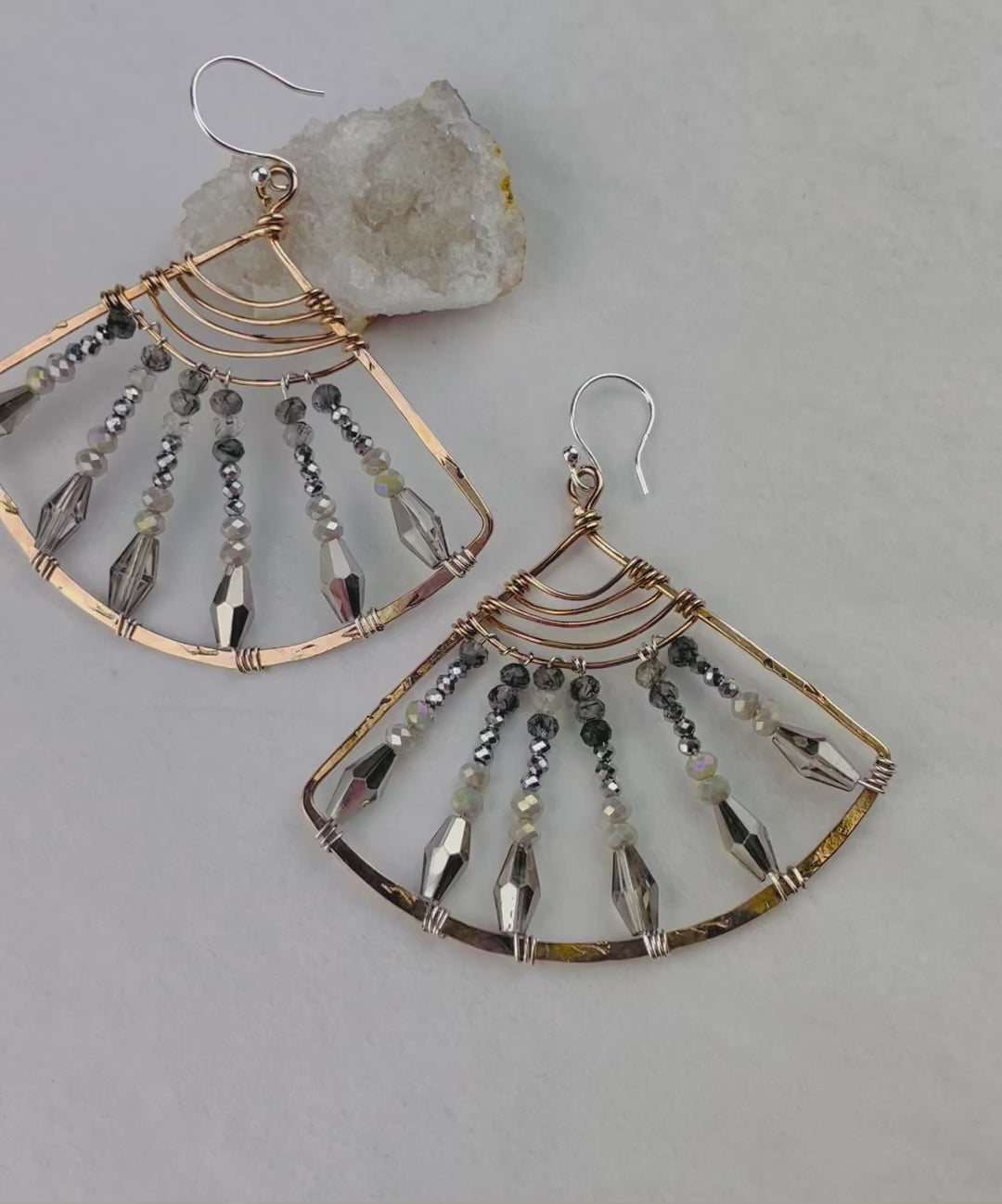 Delicate faceted black tourmalinated quartz gemstones and crystal sparkle in our handwoven bronze and sterling silver. Shimmering and twinkling like ice in the moonlight