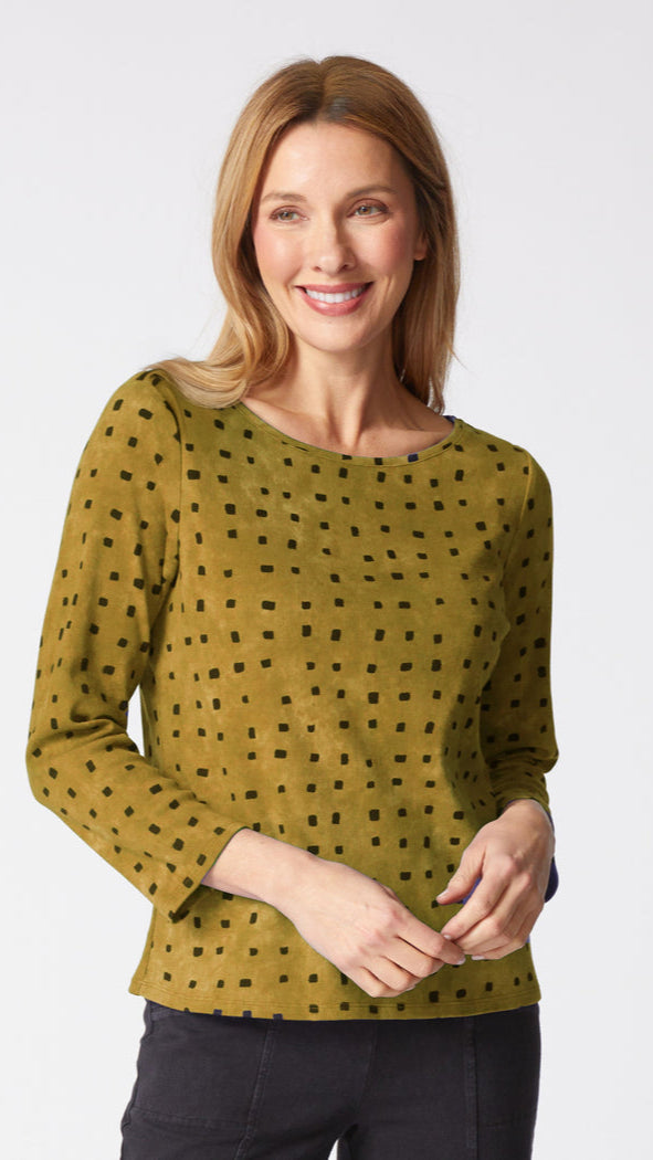 Semi-fitted style boatneck tee with semi-fitted 3/4 sleeves