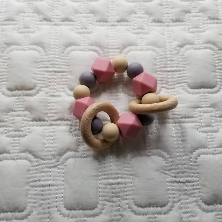 Grasping Wooden Ring Silicone Teether - Multiple Colors