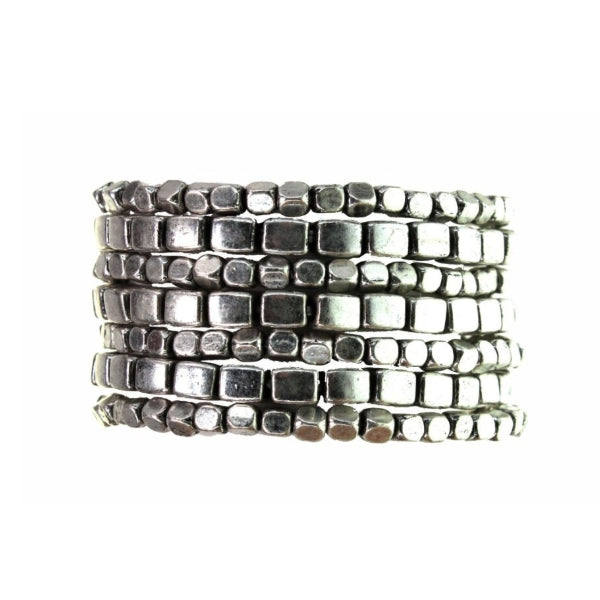 Set of 7 strands of stretch bracelets with a mix of large and small square metal beads