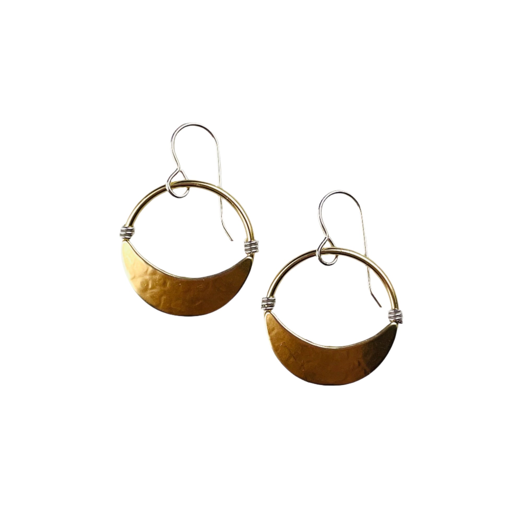 Mixed metal earrings are brass based with silver plating