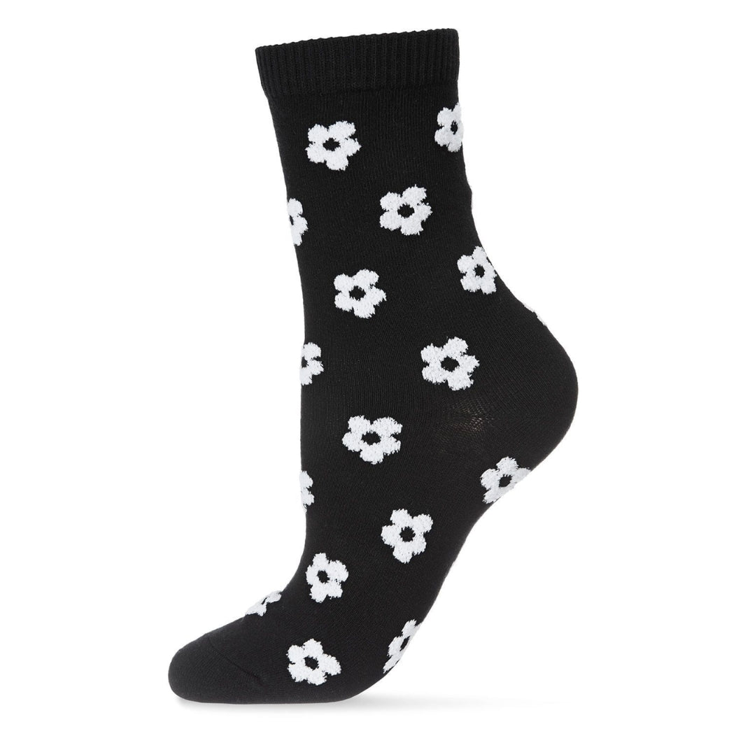 MeMoi Flocked Contrast Floral Crew Sock - Multiple Colors